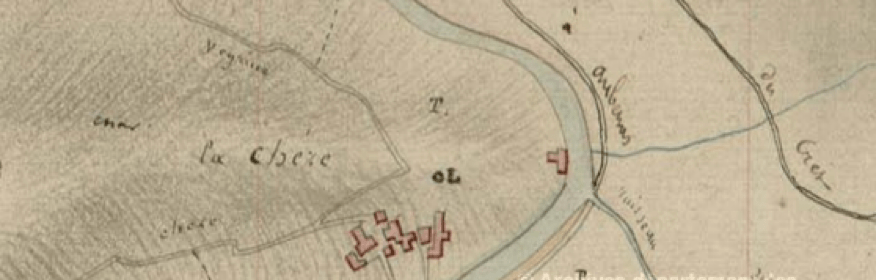 L’existence d’un moulin à cet endroit est établie dès 1464 dans le cadre d’un recensement royal dans le Vivarais. Le moulin est alors détenu en indivision par Gilles de la Chèze et Jacques de Chabannes (source : Colette Véron). Quatre siècles plus tard, sur le cadastre de 1840, on retrouve le moulin le long de la Dorne :