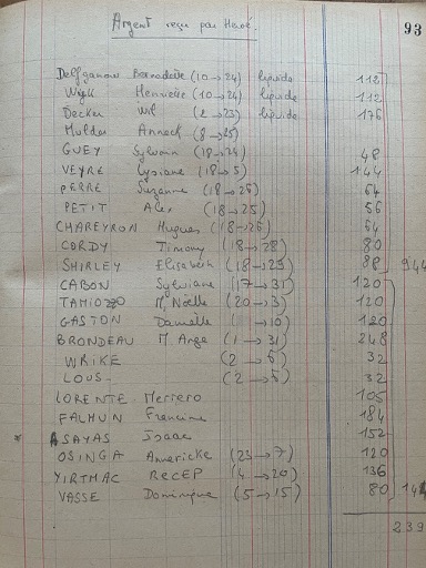 Marie-Joëlle, à la suite de Gabriel Riou, réutilise le registre des années 50 pour tenir les comptes du Centre. C’est ainsi que l’on sait que 26 jeunes, dont 2 via REMPART, venus de nombreux pays européens mais aussi des USA (au moins deux[3]) ont participé au chantier.