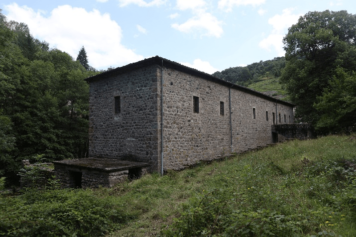 L’usine est un grand bâtiment rectangulaire d’environ 35 mètres de long pour 7 mètres de large. Son organisation est typique : la salle d’ouvraison occupe tout le rez-de-chaussée, tandis que l’étage supérieur servait d’habitation. Vue du nord-ouest, on remarque que la salle d’ouvraison ne possède aucune ouverture de ce côté, seules des fenêtres apparaissent à l’étage. L’ensemble donne une impression assez sobre et austère. Du côté est, tourné vers la rivière, la façade est rythmée par treize travées, avec deux portes qui s’ouvrent sur la terrasse.