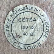 Etiquette figurant au dos du carton réutilisé en 1945 comme support à la grille des salaires. « 100 D 40 B » probablement pour 100 deniers 40 brins. Certains lots reçus des Salins avaient ces caractéristiques.